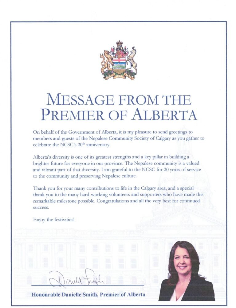 Nepalese Community Society of Calgary (NCSC) is a community-based non-profit organization established in 2004. It envisions preserving Nepalese culture and heritage and achieving the full potential of Nepal-origin Calgarians by integrating into the Canadian Society. It aims to build and strengthen the Nepalese Community in Calgary, promote and preserve Nepalese ties and partnerships with government, and non-government organizations, and improve the lives of community members. NCSC, in partnership with other organizations, provides support services to the vulnerable Nepal-origin Calgarians in different walk of their lives.